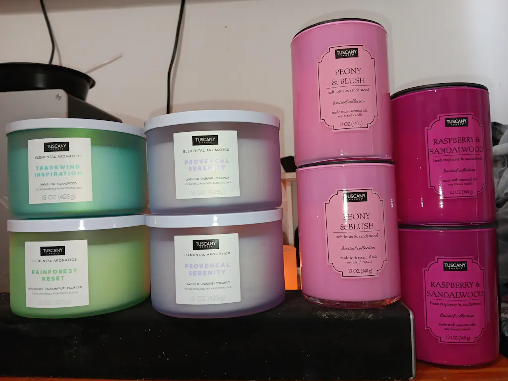 The 18 oz Tuscany Classic Collection of scented candles offers dozens of powerhouse fragrances in elegant, approachable packages. Poured into tall glass jars with silver lids, each candle features the distinctive look of our premium marbled wax in an array of colors. These candles are loaded with essential oils, each featuring two lead-free wicks for an even burn experience.